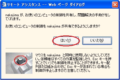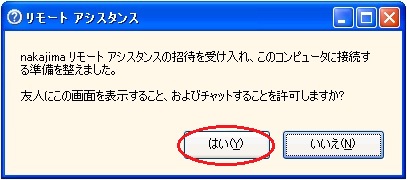 (1) リモートアシスタンスの接続が行われると、接続許可を求めるメッセージが表示されます。
